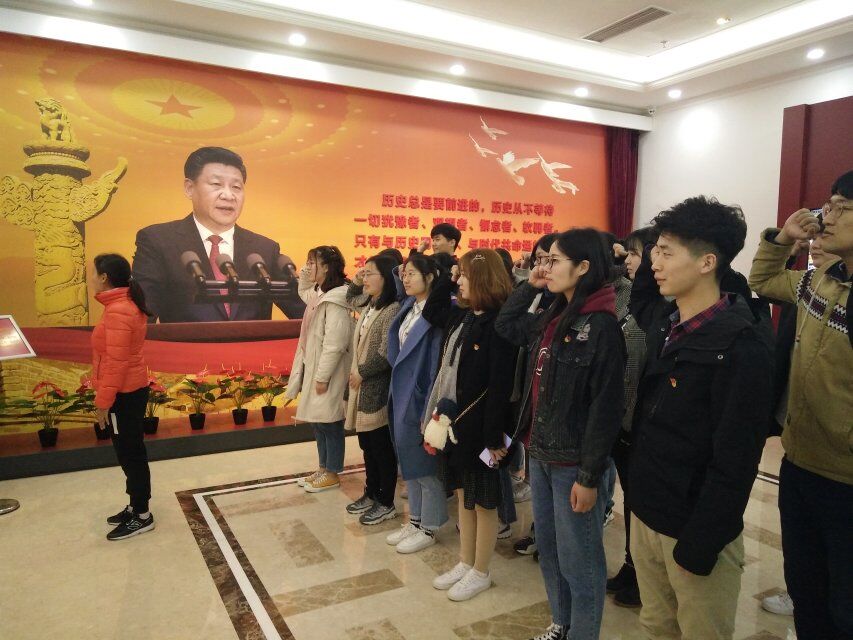 纪念馆前久矗立,牢记使命发图强。面对鲜红的党旗,学院团委书记赵立芹带领大家重温入党誓词,铿锵有力的宣誓声响彻大厅,铮铮誓言表达了全体党员牢记党的宗旨,砥砺前行,继承发扬我党优良传统,为党的事业奋斗终身的坚定决心和强烈愿望。同志们纷纷表示,决不能忘记历史,要倍加珍惜现在的和平环境和美好生活,这是先烈们留给我们最宝贵的精神财富,它将永远鞭策我们前进,鞭策我们为了人类的和平和人民的幸福生活而不断的前进与努力。