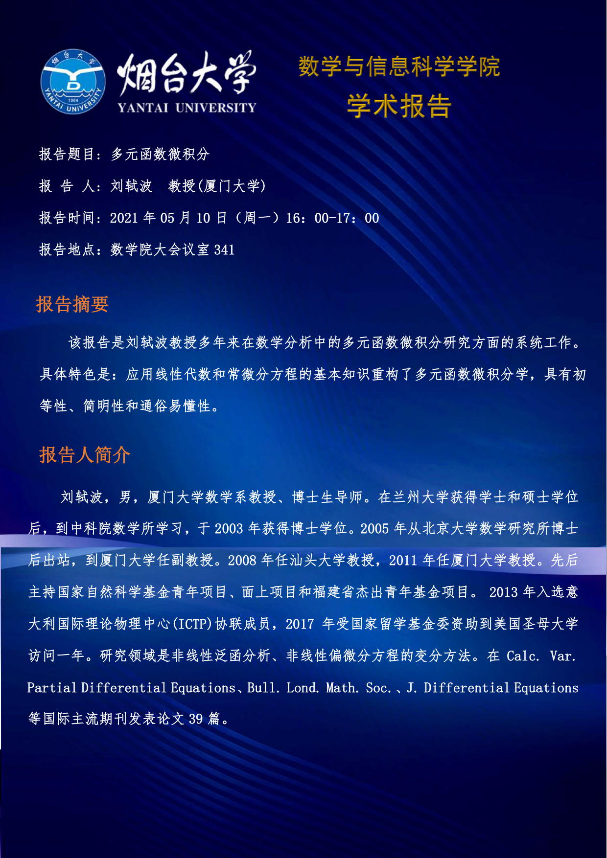 学术报告—刘轼波 教授(厦门大学)