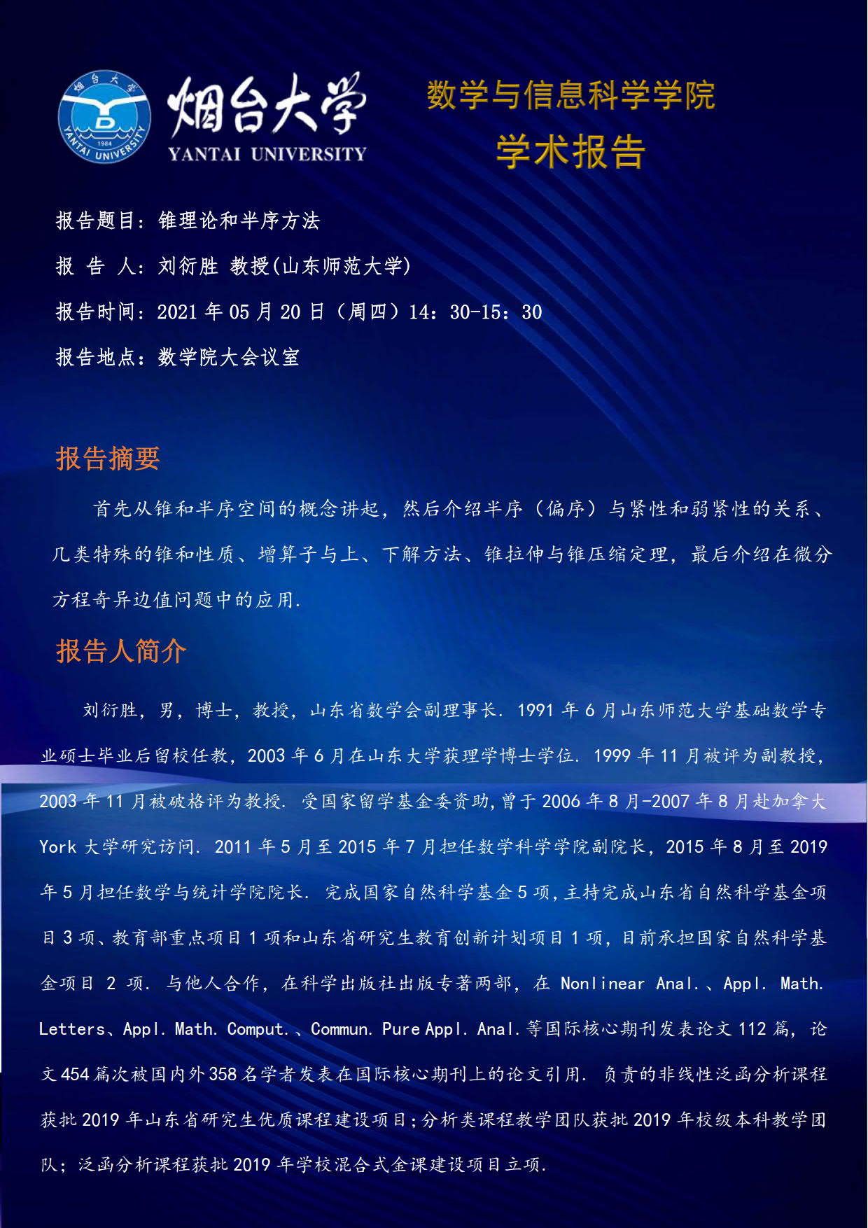 学术报告-刘衍胜 教授(山东师范大学)