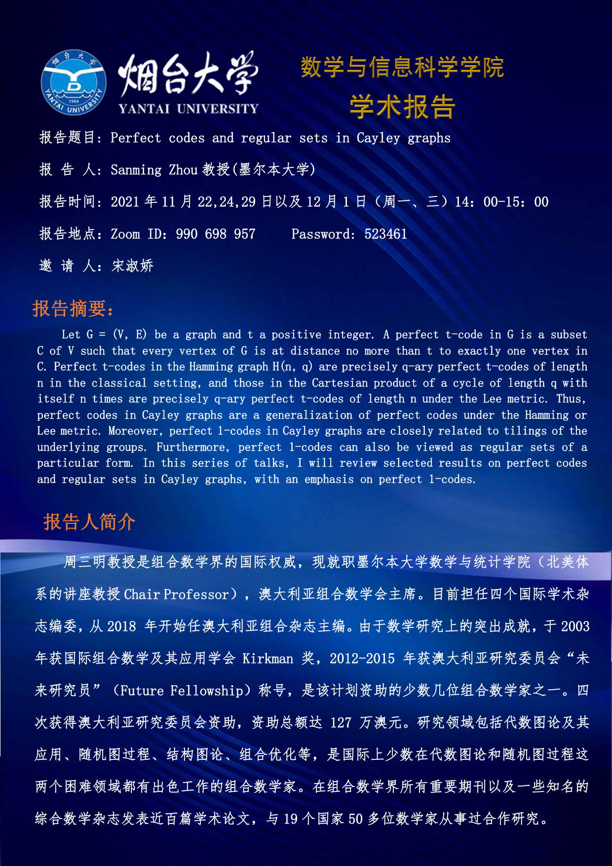 学术报告-周三明 教授(墨尔本大学)