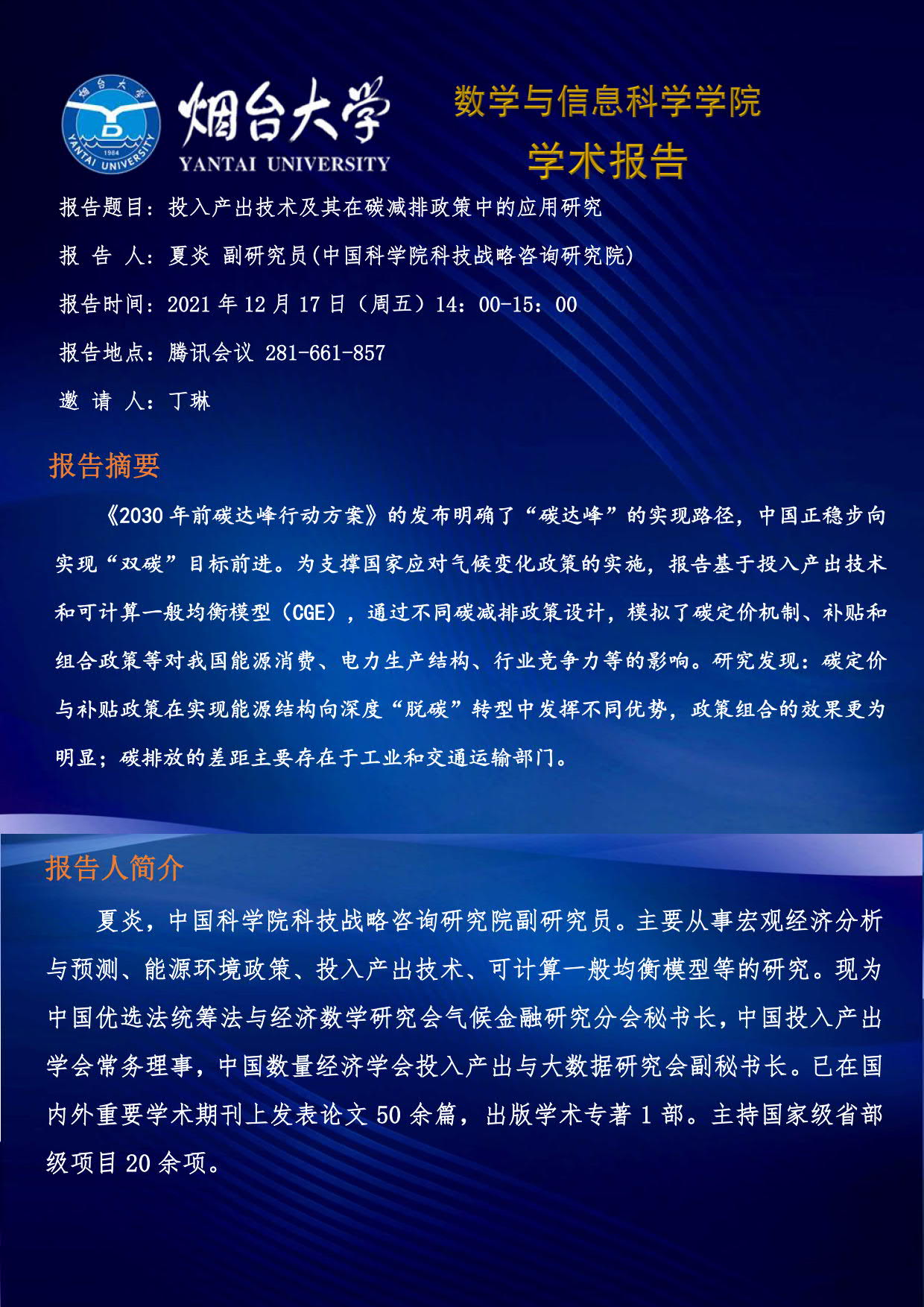 学术报告-夏炎 副研究员(中科院科技战略咨询研究院)