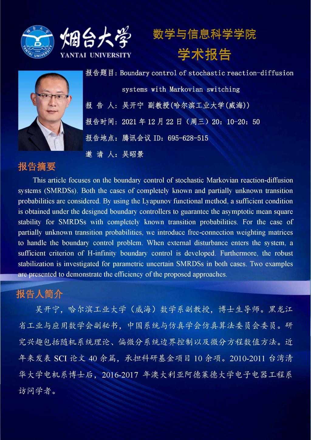 学术报告-吴开宁 副教授(哈尔滨工业大学(威海))