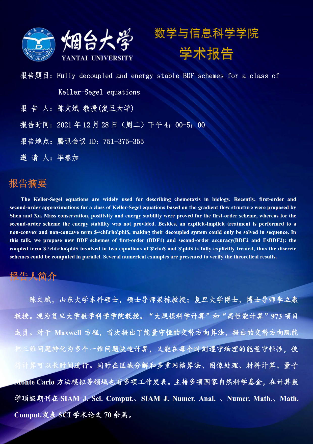 学术报告-陈文斌 教授(复旦大学)