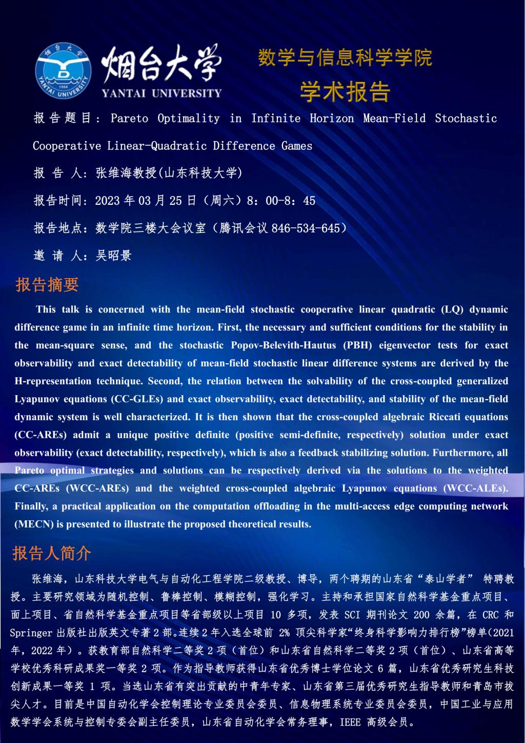学术报告--张维海 教授(山东科技大学)