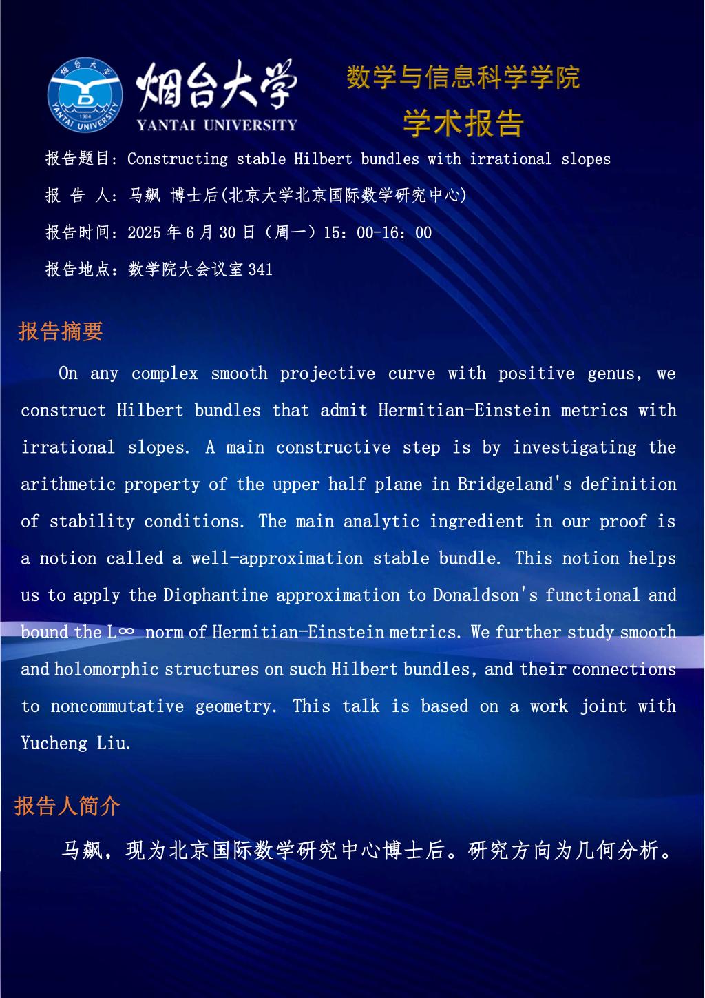 学术报告—马飙 博士后(北京大学北京国际数学研究中心)—20250630