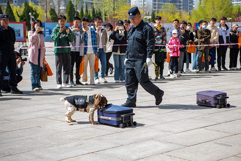 举行的烟台市国家安全智库签约揭牌仪式暨全民国家安全教育日活动,参观了在国旗广场举办的全民国家安全教育日主题宣传展览。本次展览围绕“总体国家安全观”“反奸防谍”“反恐防暴”“人民防空”“法律普及”等内容,向师生们展示了警犬表演及应急包、手摇防空警报器等警用设备的使用。通过参观学习,师生们更加直观全面地了解了国家安全的丰富内涵,进一步增强了国家安全意识和法治观念。
