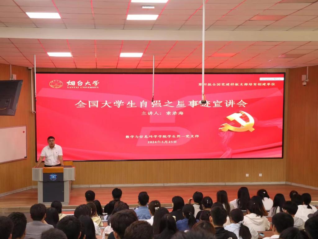 组织全体学生党员在二教104开展了“向优秀的人看齐”主题党日活动。本次活动特邀“2023年度中国大学生自强之星”获得者、研究生党员索浩海同学做分享交流。