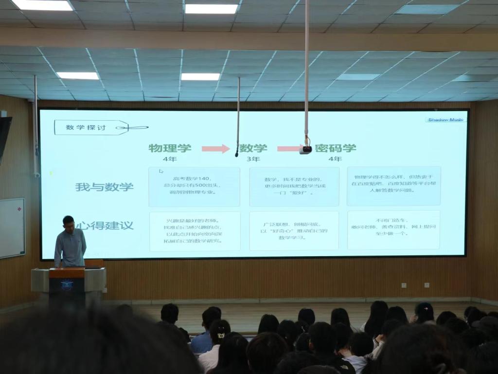 活动中,索浩海介绍了自己跨专业走向数学学习道路的初衷,分享了学习数学的方法和经验,并借助具体的数学例题讲解了如何通过发散性思维解决实际问题等内容。随后,他以自己参加西部计划志愿服务的经历,号召党员们发挥表率和先锋作用,积极报名,勇于到祖国和人民最需要的地方去建功立业。最后,索浩海又向党员们分享了自己的科研历程,从前期的文献检索,到中期数学工具的运用,再到后期科研成果的整理,遵从规律,循序渐进,要“耐得住寂寞,坐得住冷板凳”,稳扎稳打,做好科研。