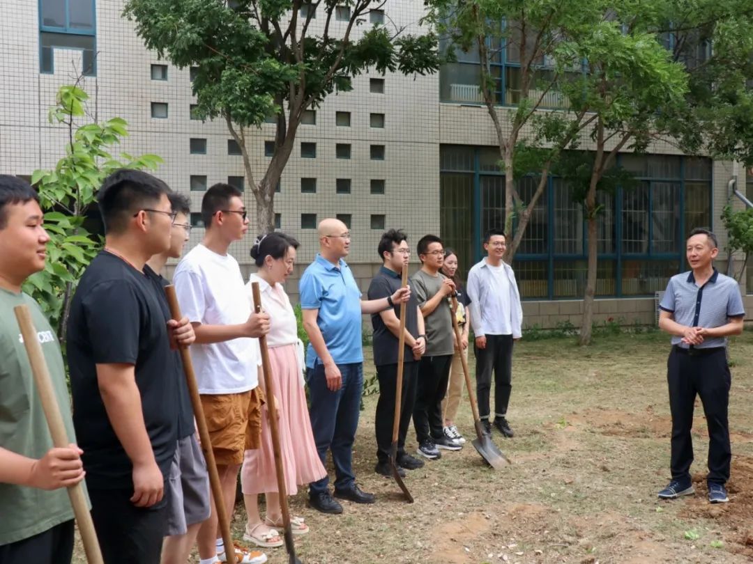 在植树现场,气氛热烈。师生们默契配合,挥锹铲土、扶直苗木、培土夯实……大家按照植树工序细致认真、有条不紊、共同完成植树任务。承载着青春与未来的樱花树稳稳扎根在烟园的沃土,为校园增添了一抹生机勃勃的新绿。植树活动结束后,师生代表一同在樱花树前合影留念。