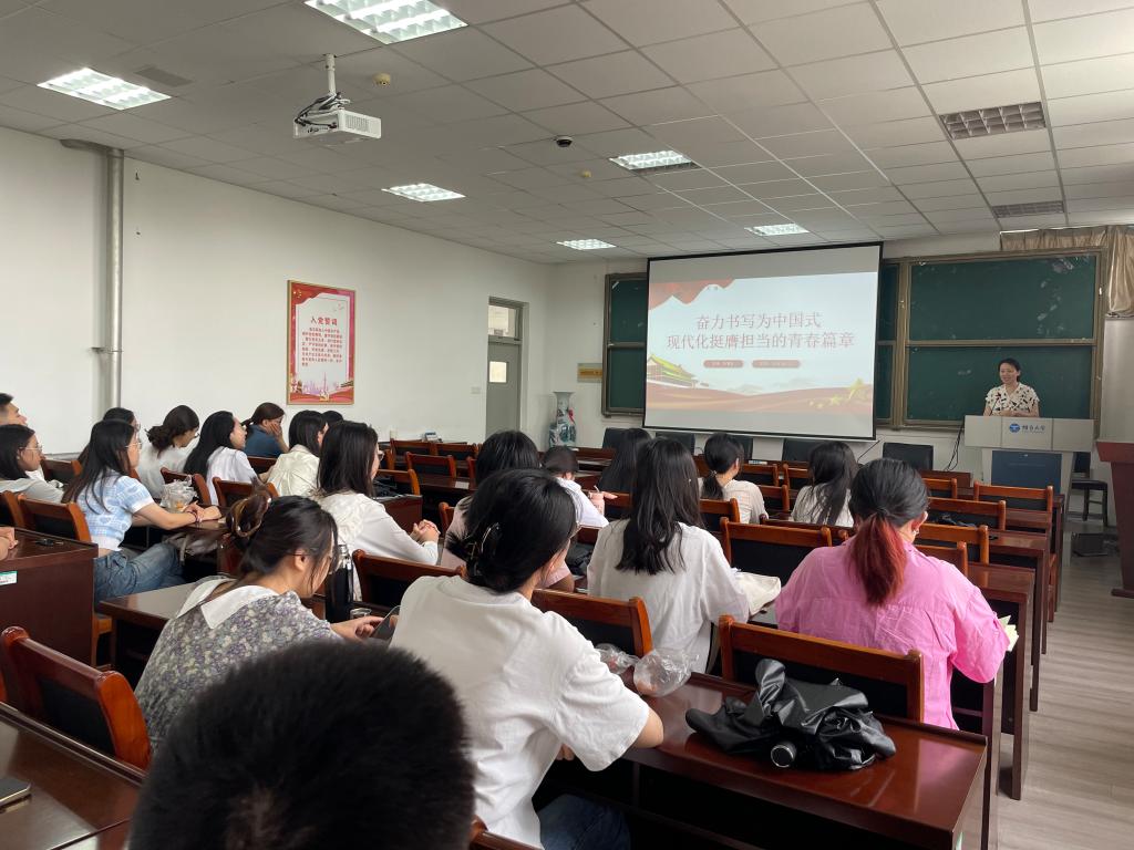 党总支书记张寅晗在学院341会议室为全体2024届毕业生党员讲授“最后一堂党课”,活动由学生第一党支部书记宋潇主持。