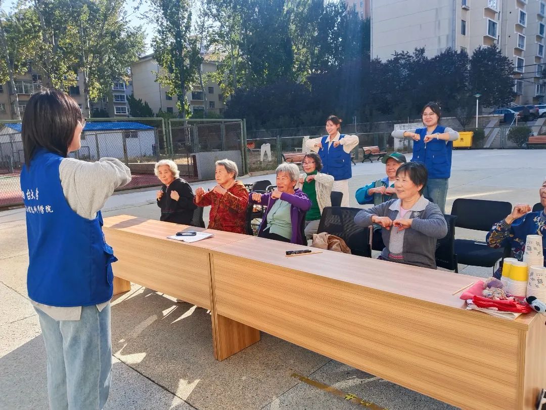 的积极分子们在烟大家属院内开展重阳节志愿服务老年人活动。此次活动以“情满夕阳 爱满金秋”为主题,旨在通过有益于身体健康的康复操和形式多样的游戏互动,让老人们感受到关爱,丰富他们的晚年生活。