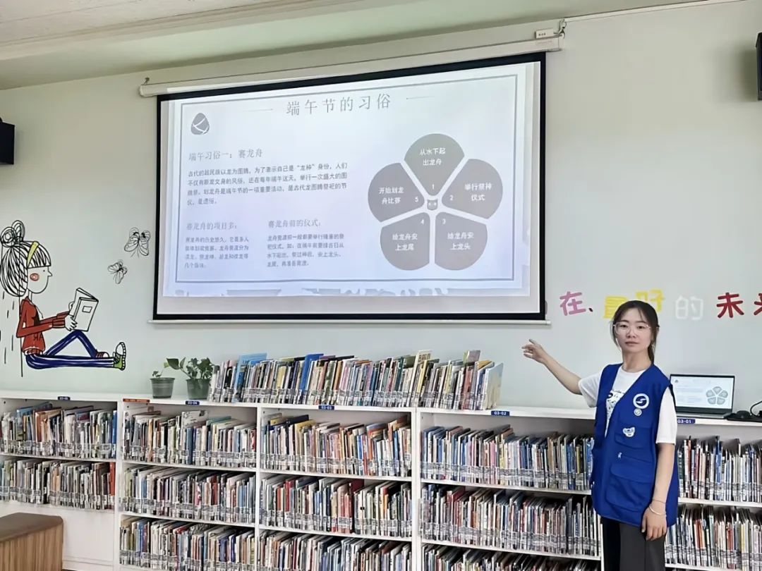 “童享艺数”志愿服务队走进烟台市图书馆,组织开展了“龙舟跃绘本,童手绘端午”主题绘本分享活动,为孩子们编织了一场穿越千年的文化童趣之旅.