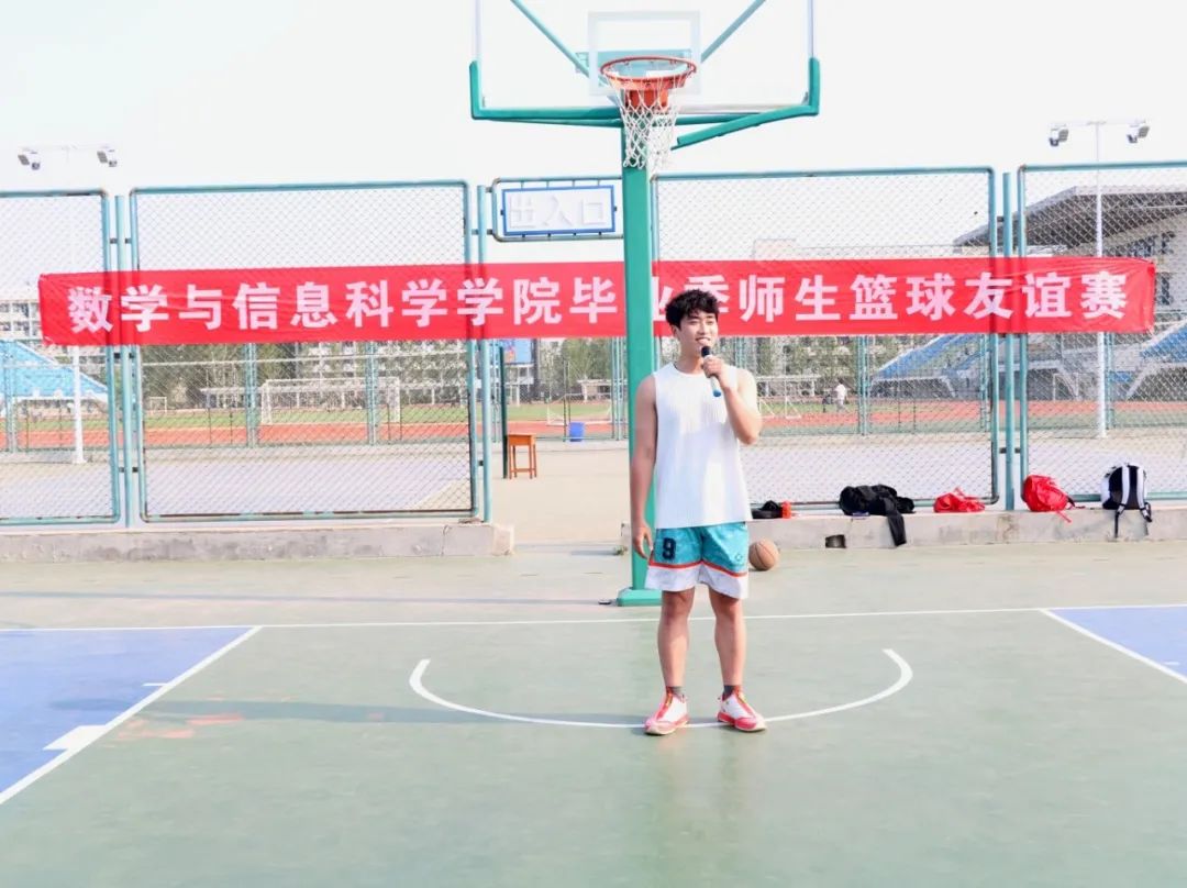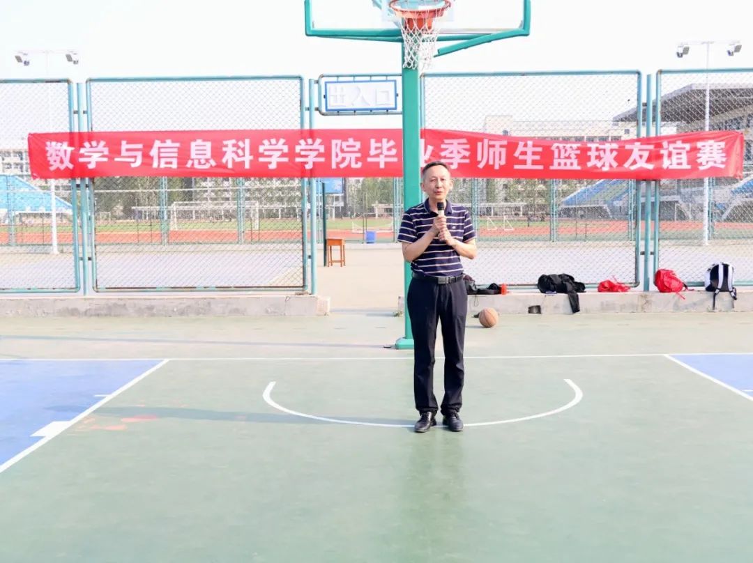 于篮球场举办2025年毕业季师生篮球友谊赛。