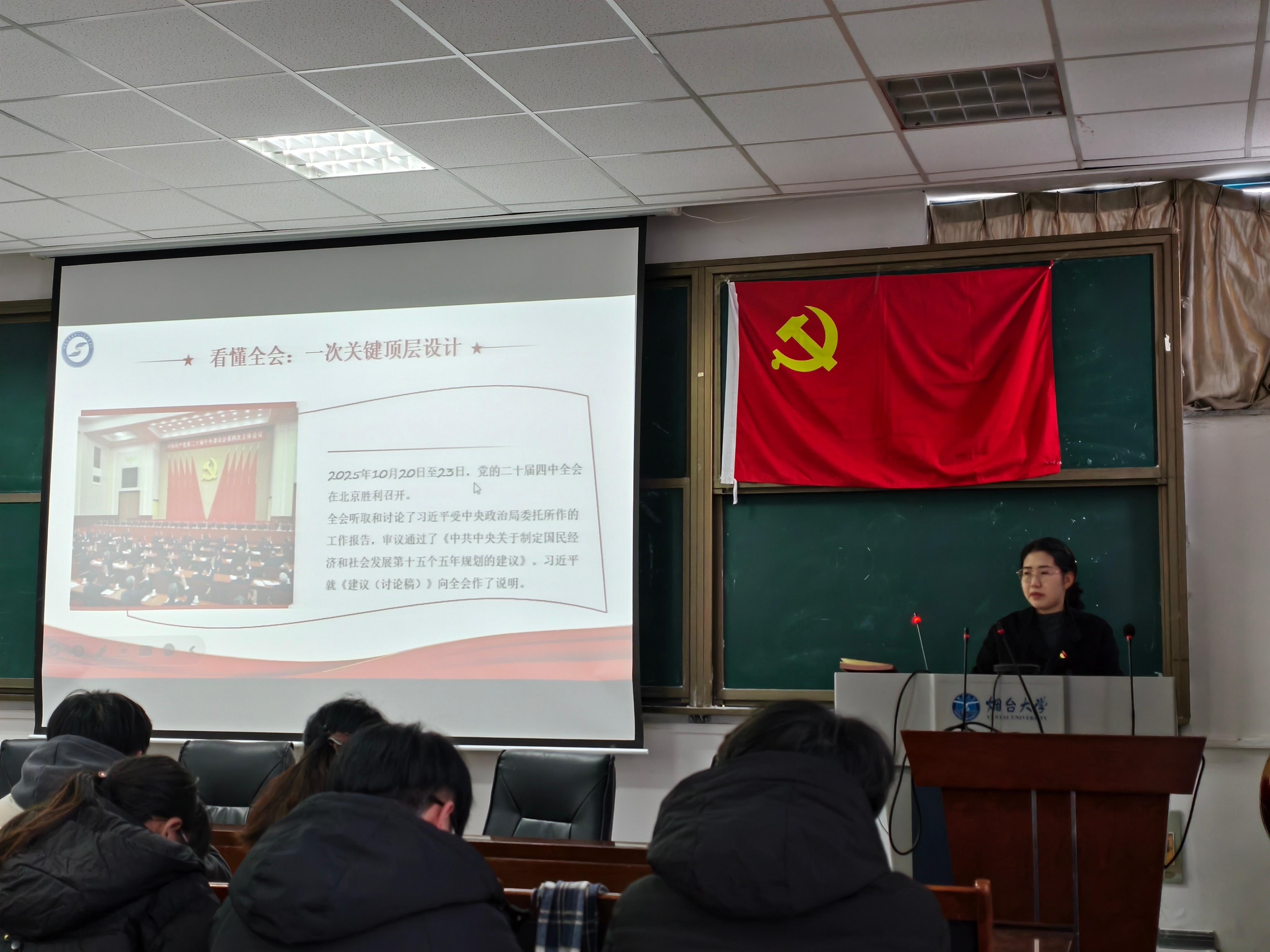 学生第一党支部召开主题党日,党支部书记张晔同志首先以“青春向党学全会 强国复兴勇担当”为主题领学党的二十届四中全会精神,解读重大战略部署与新时代要求,强调青年党员应自觉将个人理想融入国家发展。