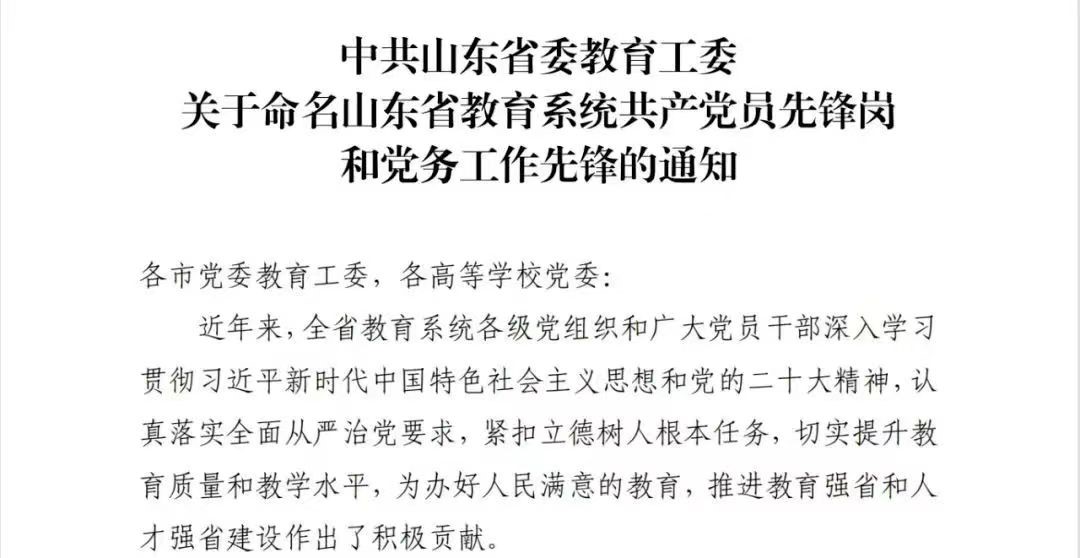 近日,中共山东省委教育工委印发《关于命名山东省教育系统共产党员先锋岗和党务工作先锋的通知》,禁漫屋